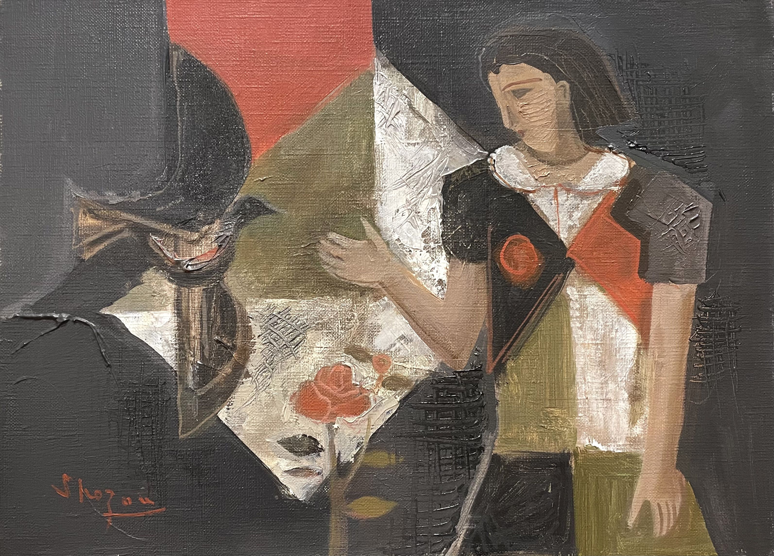 島田章三 女と鳥 F4 油彩 |