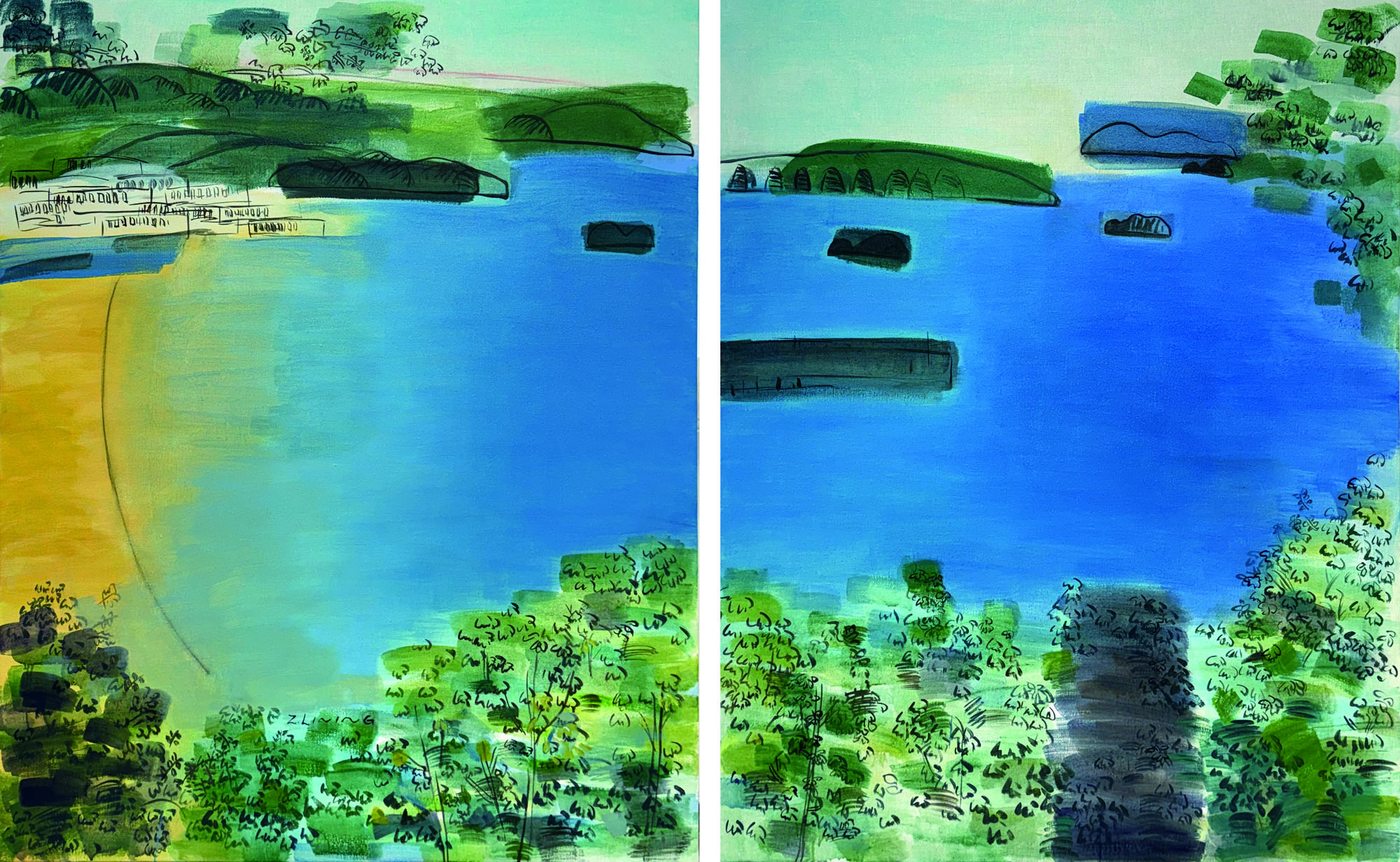 張麗寧 青の変奏 100.0x160.6cm(F40x2) カンヴァスに油彩 |